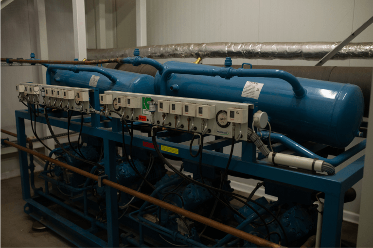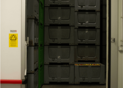 – 2 refrigeration cells for transit storage, for perishable fruits, or smaller quantities. The surface area of the 2 cells is 74 sqm and 36 sqm, respectively, with a ceiling height of 4.5m.