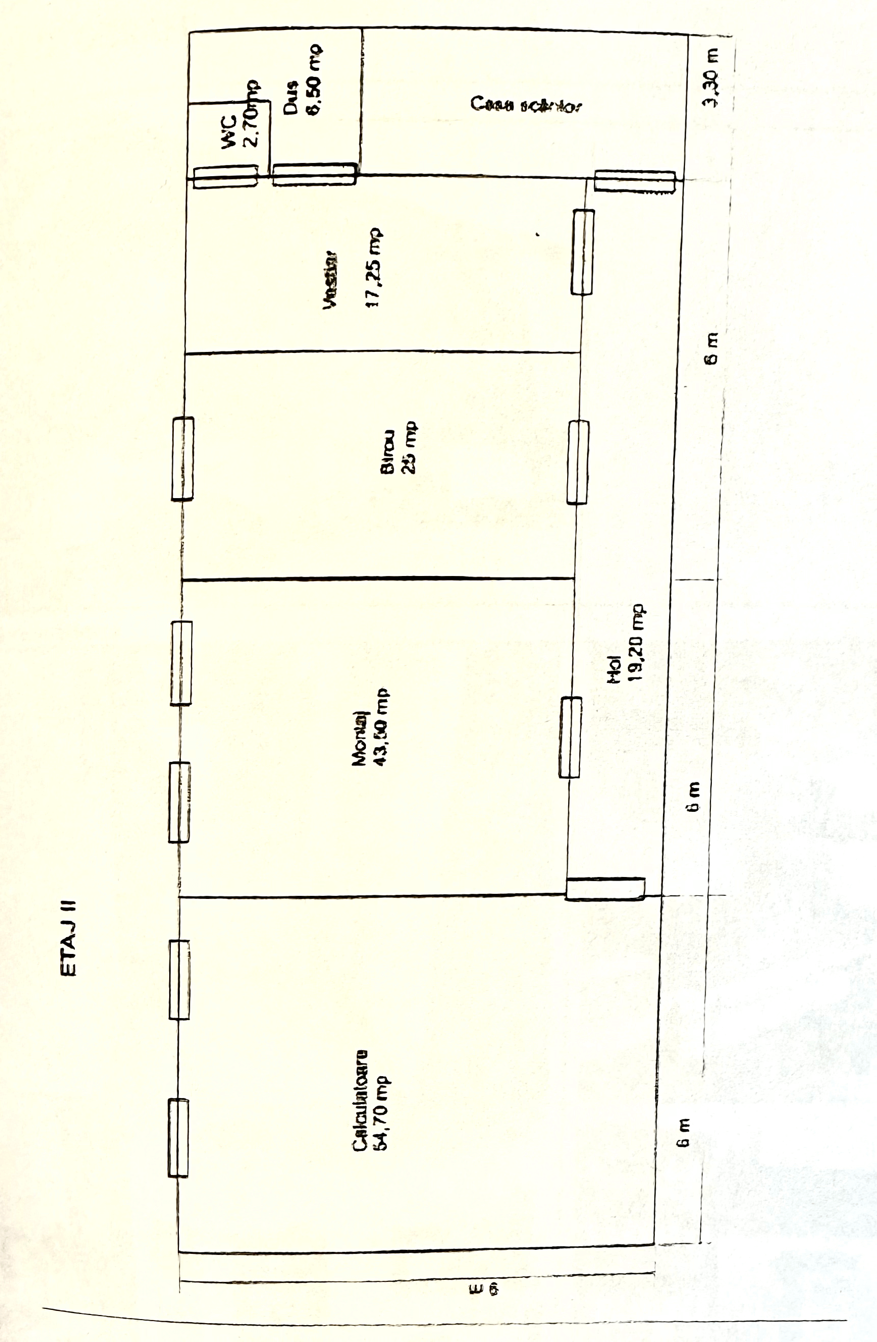 etaj 2 – wc, dus, hol, casa scarii, vestiar, birou, montaj calculatoare
